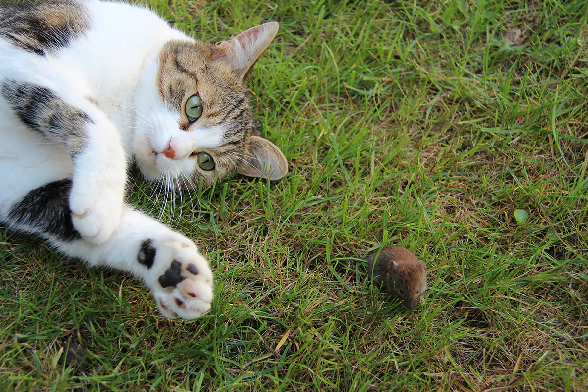 Natürliche Feinde: Katzen haben Wühlmäuse zum Fressen gern, oder zumindest zum Spielen. Wer sich eine junge Katze anschafft, kann davon ausgehen, dass sie einen wichtigen Beitrag zur Wühlmausbekämpfung leisten wird. In ländlichen Gebieten können Ansitzstangen für Greifvögel aufgestellt werden, um die Mäuseplage in Schach zu halten. Verwilderte Ecken mit Totholz- oder Steinhaufen locken Mauswiesel an, die auch gerne Jagd auf Wühlmäuse machen. Ebenso ein effizienter Mäusejäger: Der Fuchs. Heißen Sie ihn also gern in Ihrem Garten willkommen.